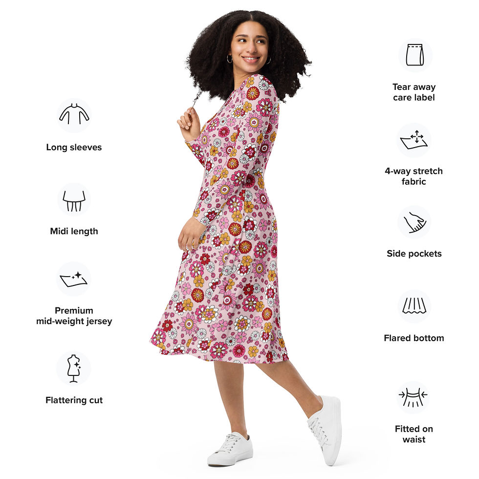 All-over Flowers Print Long Sleeve Midi Dress